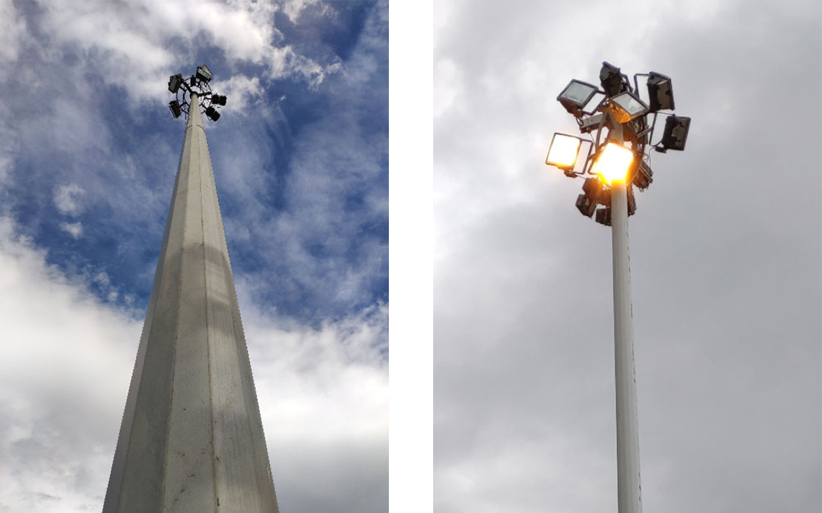Durante años, el sistema de iluminación del recinto ha mantenido prácticamente intacta la tecnología instalada en origen: proyectores de vapor de sodio de alta presión (VSAP) de 1.000 W, montados sobre torres de 20 metros con coronas móviles. Una solución que en su momento garantizaba potencia y cobertura, pero que hoy presenta importantes limitaciones en términos de eficiencia, mantenimiento y capacidad de control.