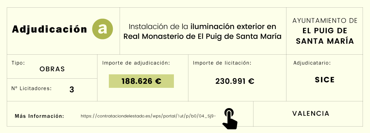 Adjudicaciones de contratos de alumbrado e iluminación (haz clic sobre los cuadros para acceder a las licitaciones):