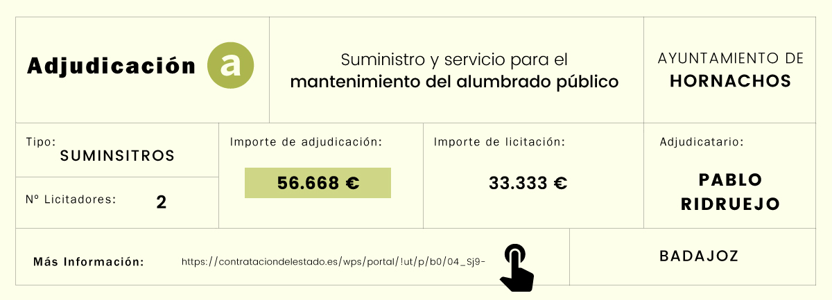 Adjudicaciones de contratos de alumbrado e iluminación (haz clic sobre los cuadros para acceder a las licitaciones):