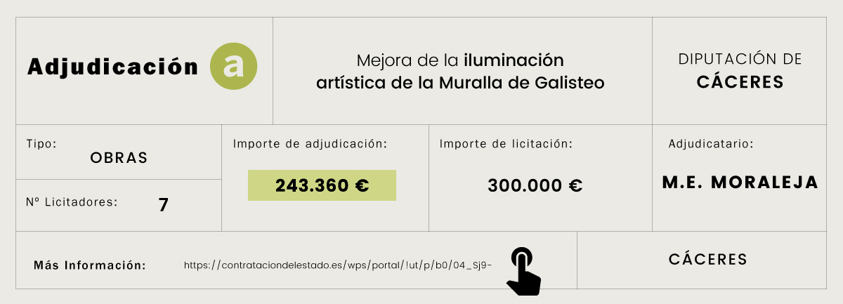 Adjudicaciones de contratos de alumbrado e iluminación (haz clic sobre los cuadros para acceder a las licitaciones):