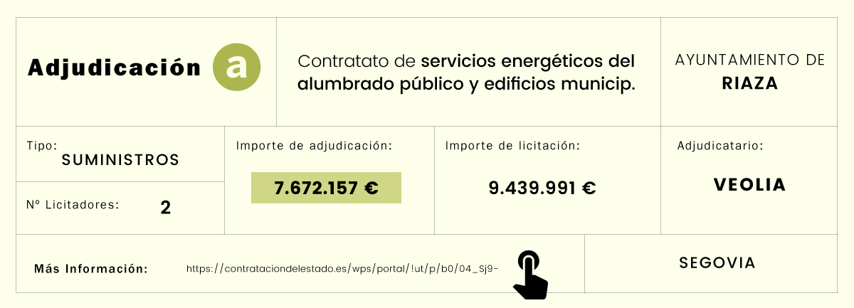 Adjudicaciones de contratos de alumbrado e iluminación (haz clic sobre los cuadros para acceder a las licitaciones):