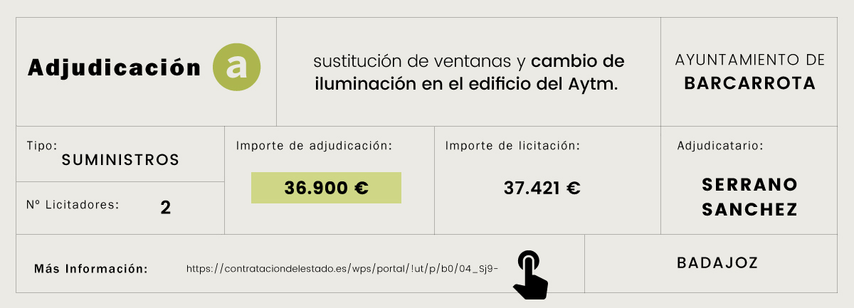 Adjudicaciones de contratos de alumbrado e iluminación (haz clic sobre los cuadros para acceder a las licitaciones):