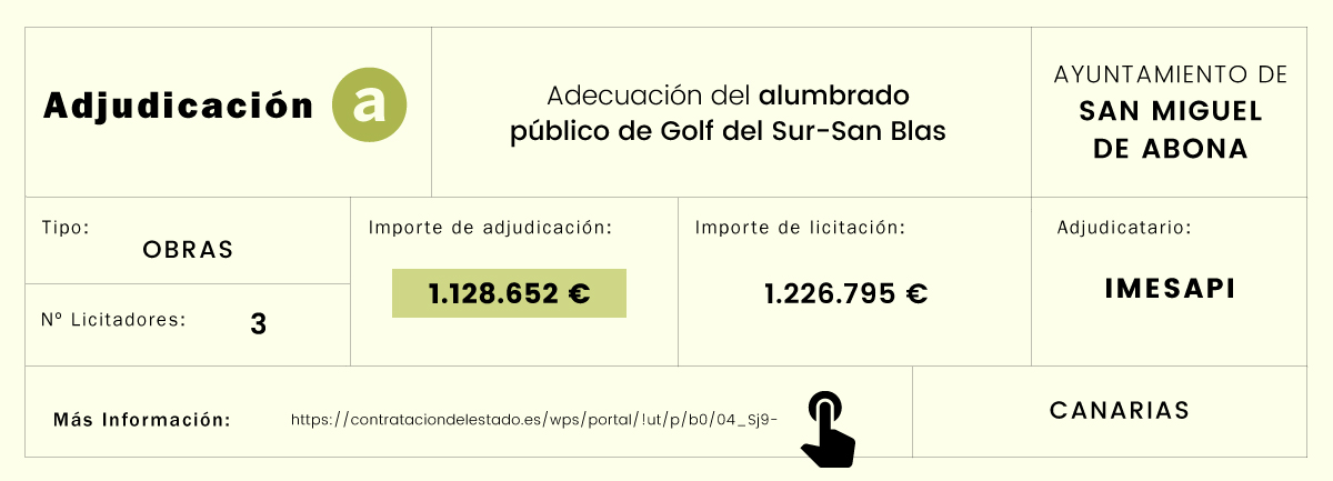 Adjudicaciones de contratos de alumbrado e iluminación (haz clic sobre los cuadros para acceder a las licitaciones):