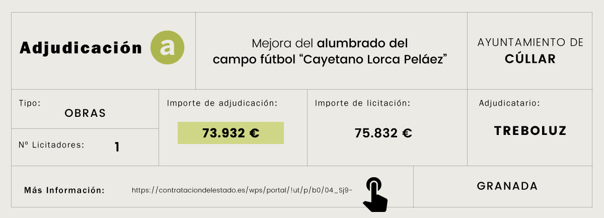 Adjudicaciones de contratos de alumbrado e iluminación (haz clic sobre los cuadros para acceder a las licitaciones):