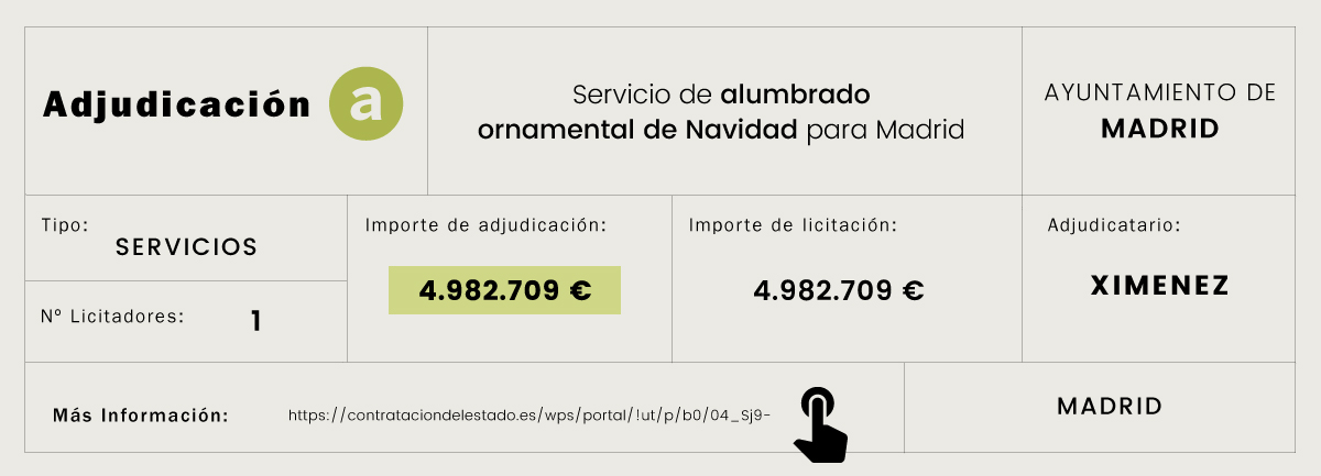 Adjudicaciones de contratos de alumbrado e iluminación (haz clic sobre los cuadros para acceder a las licitaciones):