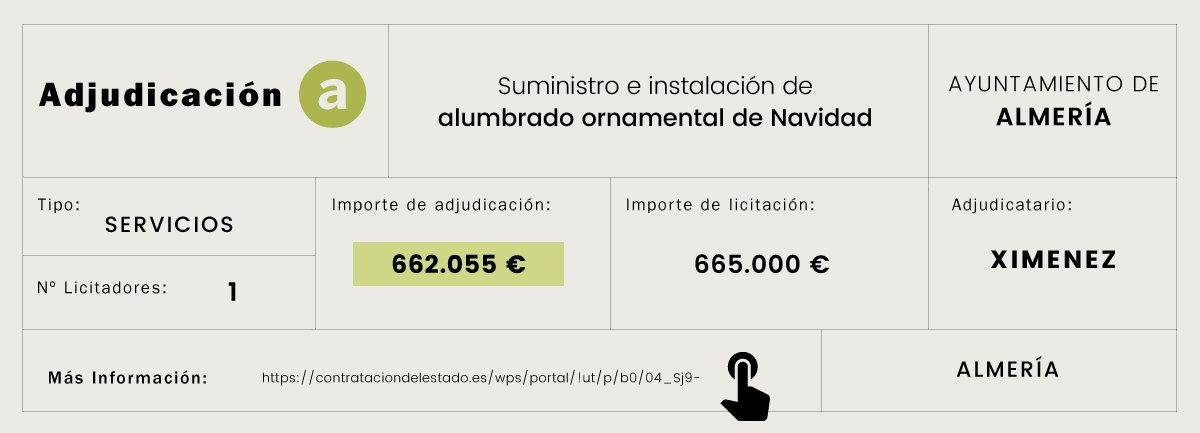 Adjudicaciones de contratos de alumbrado e iluminación (haz clic sobre los cuadros para acceder a las licitaciones):