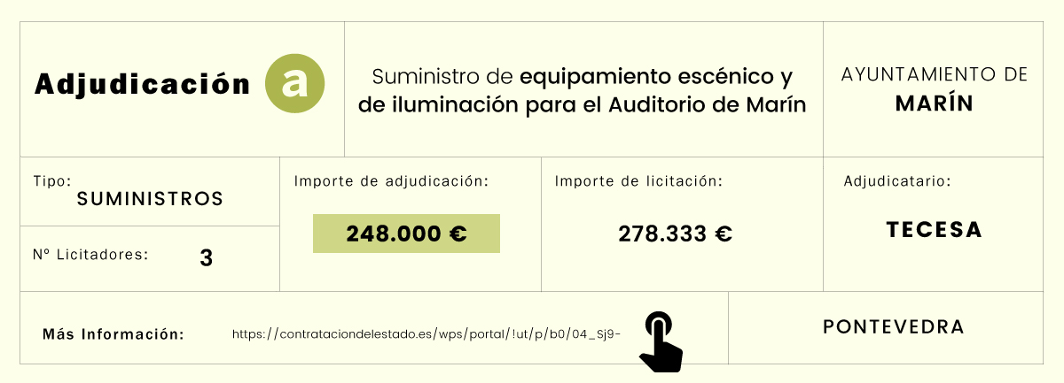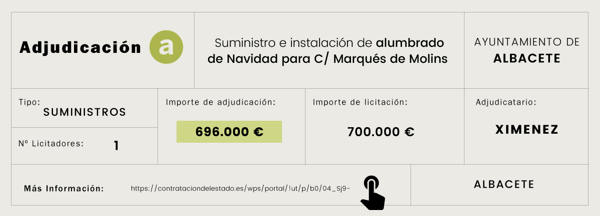 Adjudicaciones de contratos de alumbrado e iluminación (haz clic sobre los cuadros para acceder a las licitaciones):
