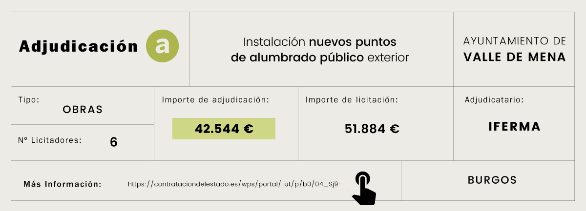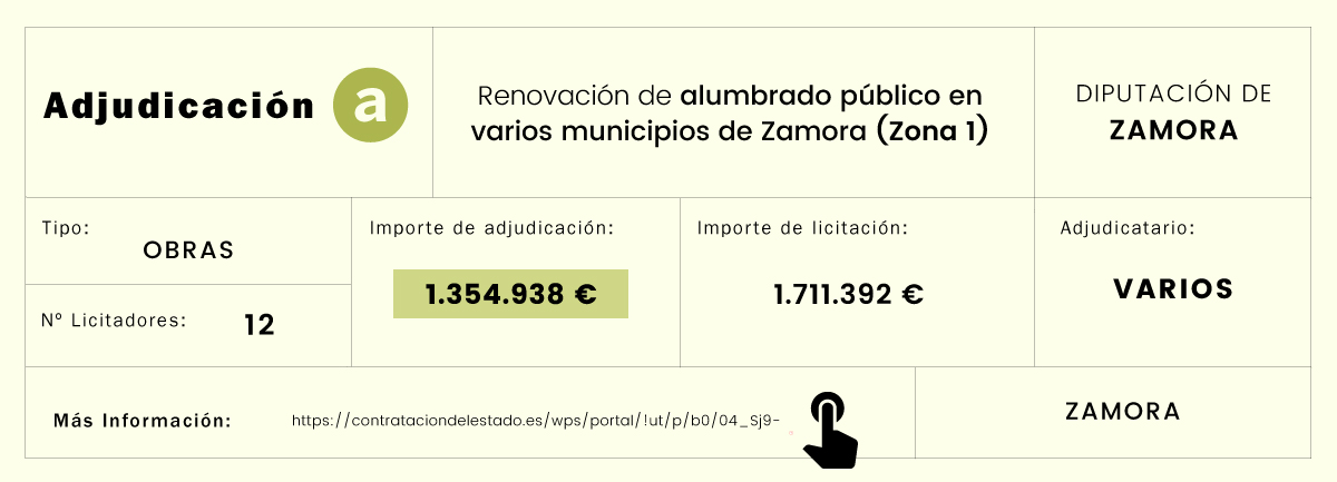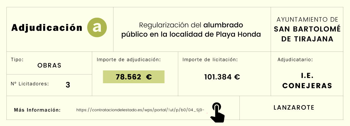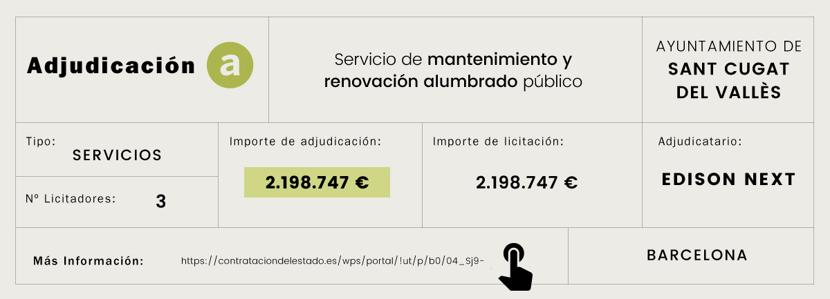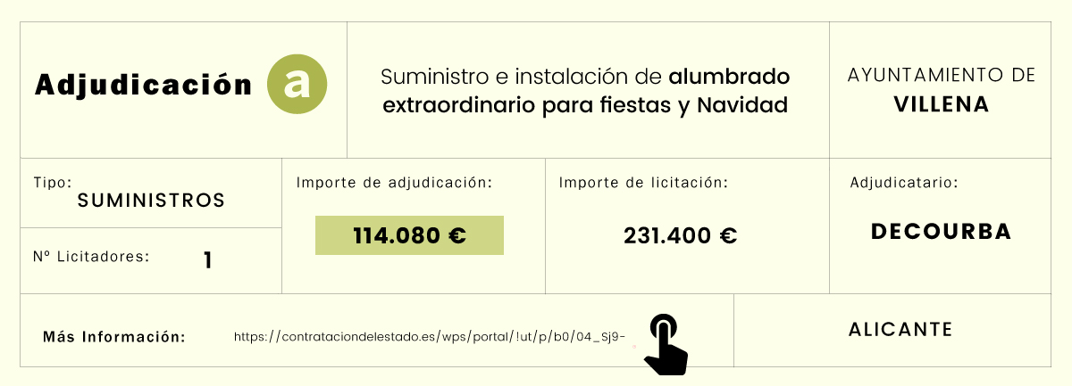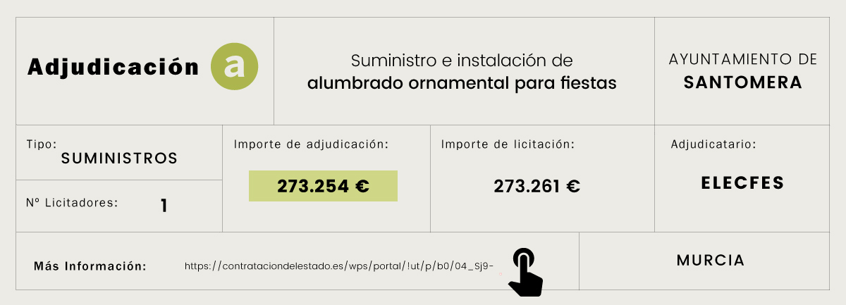 Adjudicaciones de contratos de alumbrado e iluminación (haz clic sobre los cuadros para acceder a las licitaciones):