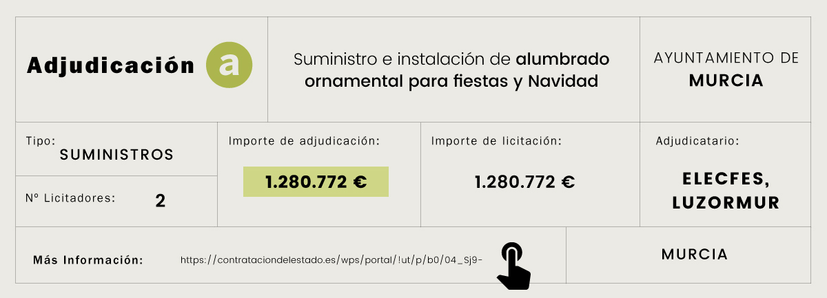 Adjudicaciones de contratos de alumbrado e iluminación (haz clic sobre los cuadros para acceder a las licitaciones):
