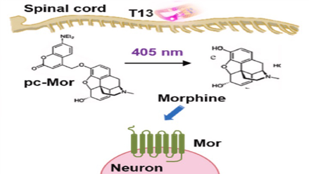 Para validar esta tecnología, el equipo de investigación eligió uno de los compuestos más representativos del tratamiento del dolor: la morfina. En concreto, utilizaron una versión modificada conocida como photo-caged morphine (pc-Mor), que incorpora un grupo químico fotosensible —una unidad de cumarina— que bloquea temporalmente la capacidad del opioide para unirse a sus receptores.