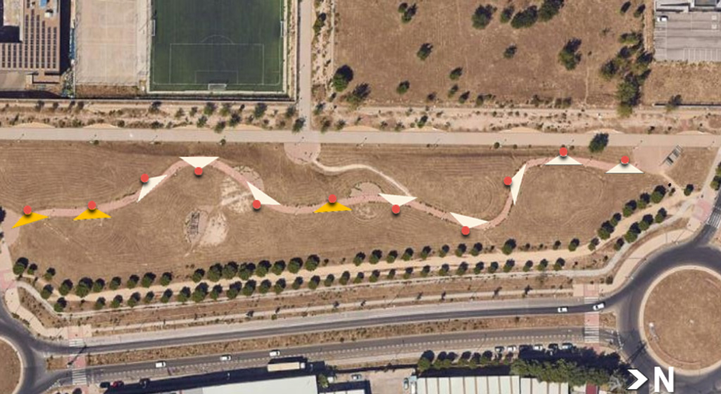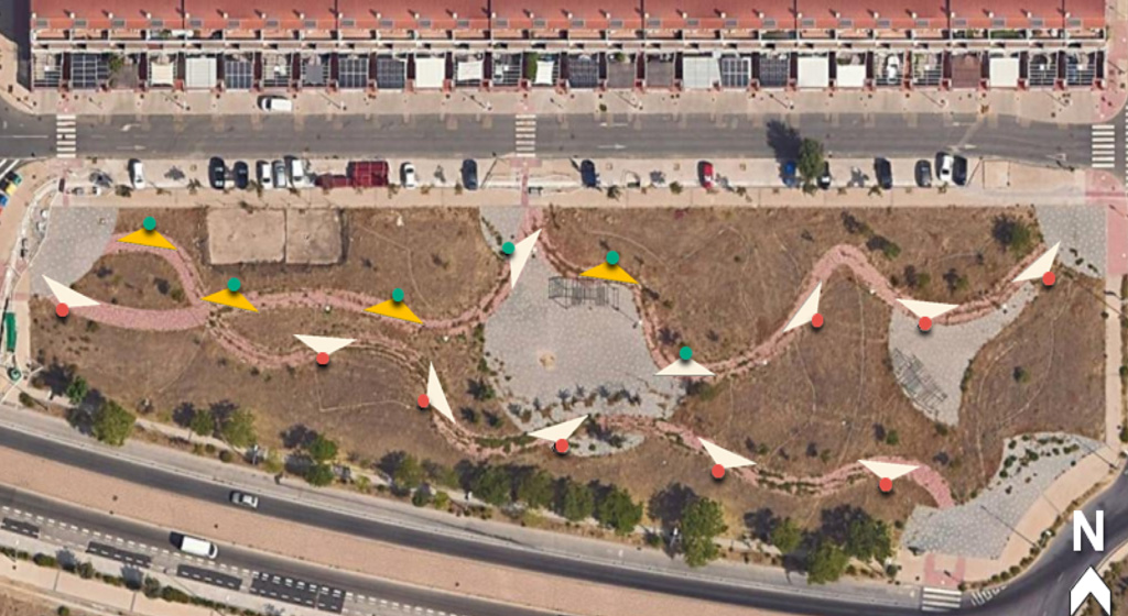 Por ello, la intervención propone la reposición del alumbrado mediante luminarias solares autónomas con tecnología LED, una solución que permitirá recuperar la funcionalidad nocturna del espacio sin necesidad de reconstruir la red eléctrica convencional. Esta actuación contribuirá a mejorar la seguridad y el uso ciudadano del corredor verde y, al mismo tiempo, a reducir el consumo energético y la vulnerabilidad de la instalación frente a posibles robos de material en el futuro.