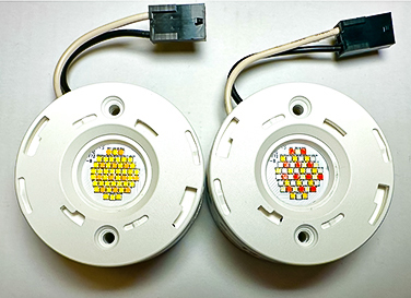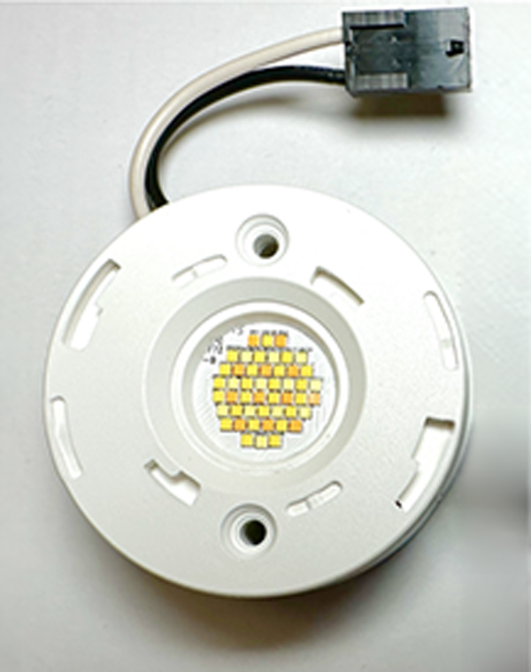 Ambos dispositivos integran matrices Chip-on-Board (COB) basadas en LED CSP multicolor, electrónica de alimentación integrada y conectividad Bluetooth compatible con el ecosistema Casambi. El resultado es un módulo compacto de aproximadamente 50 mm de diámetro y 10 mm de altura que puede emplearse como bloque funcional completo dentro de una luminaria.