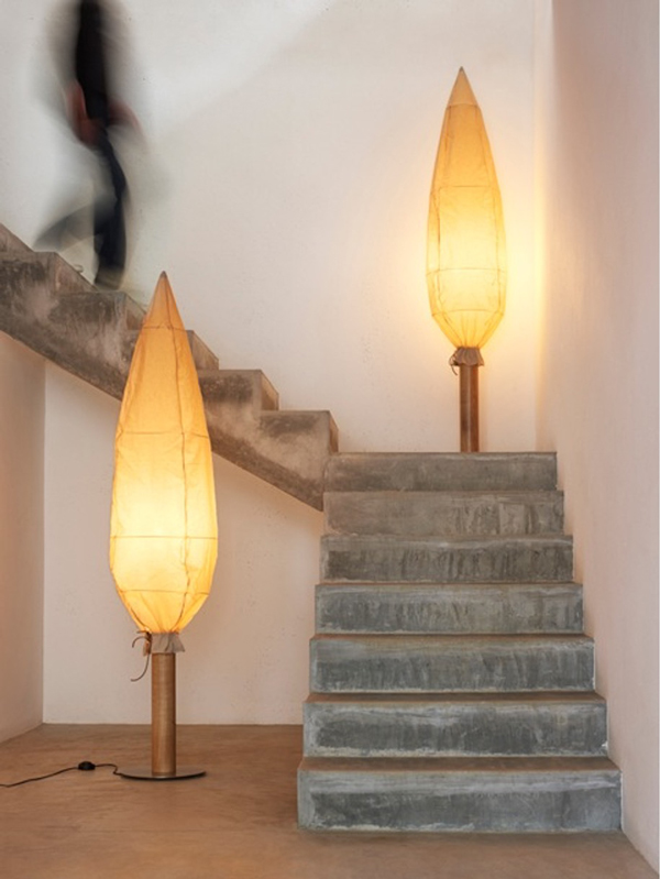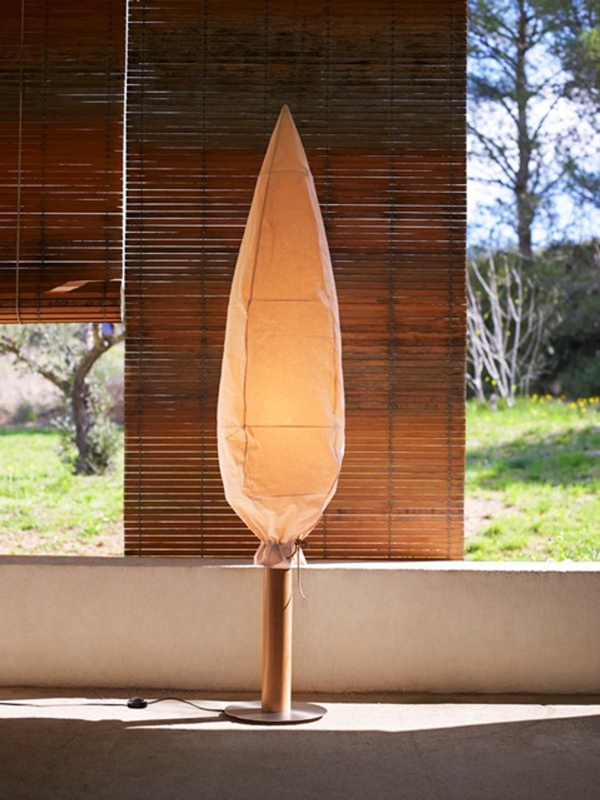 La luminaria se apoya con solidez sobre una base de aluminio lacado que refuerza su estabilidad estructural, incluso en condiciones de viento, y mantiene un diámetro contenido de solo 40 cm, lo que facilita su integración en espacios reducidos o de paso. Con una altura total de 190 cm, la pieza se completa con una pantalla de tejido acrílico técnico de la firma Agora, específicamente diseñado para uso exterior, que reproduce con fidelidad la silueta esbelta y orgánica del ciprés.