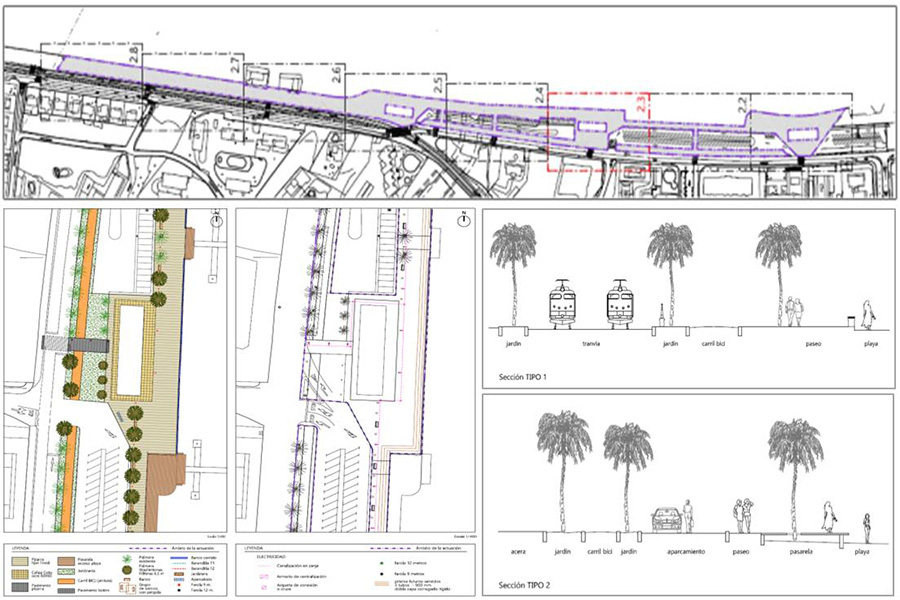 Promovido por la concejalía de Urbanismo del Ayuntamiento de Alicante la iniciativa contemplaba la renovación del pavimento, la creación de nuevas zonas de estancia y de recreo, zonas de sombra y pérgolas, servicios, la mejora de la accesibilidad a la playa, puntos de información y, para el tema que queremos exponer aquí, la implementación de una nueva instalación de alumbrado acorde a las necesidades y voluntad de servicio de estos espacios.
