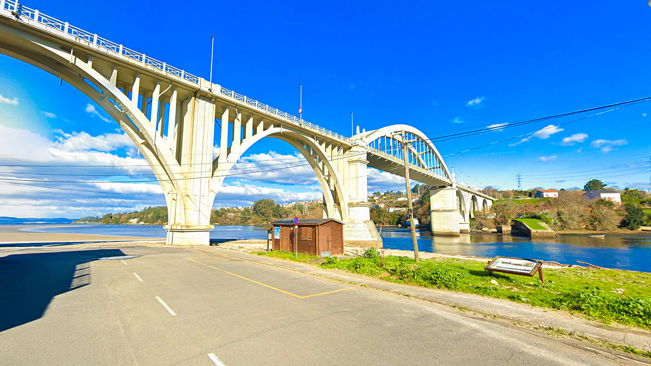 El Puente del Pedrido, estructura de arco situada en la ría de Betanzos, conecta los municipios de Bergondo y Paderne en A Coruña. Este puente de 520 metros, construido completamente en hormigón armado, se organiza en tres secciones distintas: un primer tramo de 340 metros sustentado por diez arcos dobles, un tramo central de 78,40 metros con un destacado arco doble que sostiene el tablero mediante cuarenta péndolas, y un último tramo de 102 metros apoyado en tres arcos dobles.