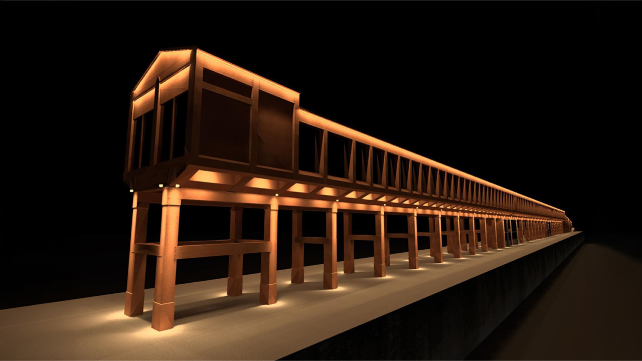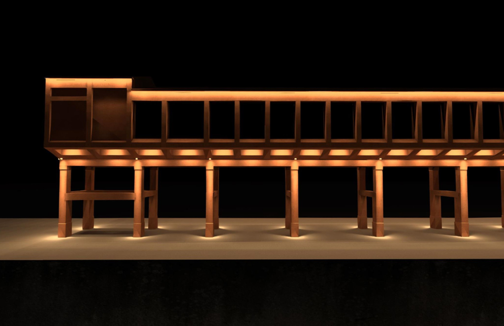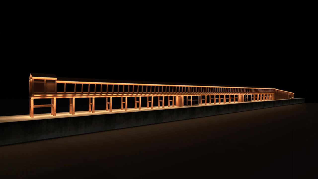El ámbito de la intervención abarca la estructura principal del cargadero, así como sus accesos laterales y los viales de servicio. En el propio edificio se implantará un nuevo sistema de iluminación ornamental con horario de funcionamiento programado, que sustituirá a las luminarias actuales y operará de forma coordinada con el alumbrado público del entorno. De este modo, durante el encendido ornamental el alumbrado funcional permanecerá apagado, activándose automáticamente una vez finalice la iluminación arquitectónica.