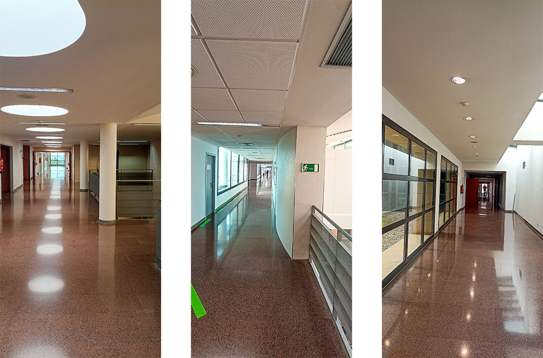 La intervención no afecta ni a la iluminación de emergencia ni al alumbrado exterior del recinto. En términos de ejecución, la mayoría de los reemplazos se realizarán mediante una instalación punto a punto, es decir, colocando la nueva luminaria en el mismo emplazamiento y bajo las mismas condiciones de montaje que la existente. Salvo casos puntuales, se respetará el sistema actual —ya sea en superficie, empotrado, suspendido o sobre carril— garantizando así la conservación de las condiciones lumínicas preexistentes.