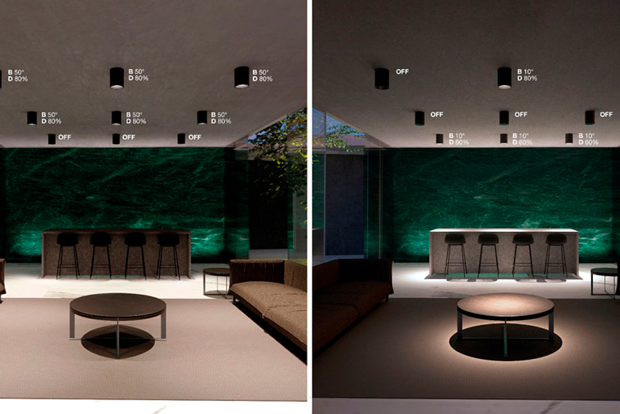 El tema del control de la luz es de crucial importancia, no solo porque ofrece una gran libertad de diseño, sino sobre todo porque es una herramienta para ahorrar energía y mejorar el confort individual y el bienestar. Con la tecnología Digital Beam, Simes* quiere avanzar hacia un concepto de LUZ SIMPLE, DINÁMICA Y DIGITAL, ofreciendo la posibilidad de controlar el ancho del haz de luz en tiempo real.