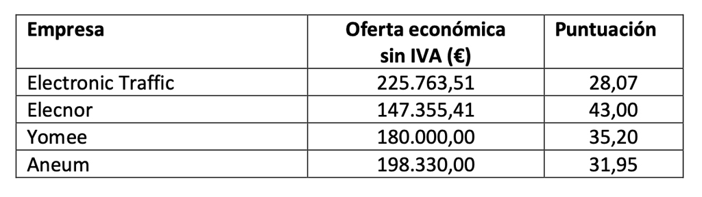 A la licitación, publicada el pasado mes de julio de 2024 con un presupuesto base de licitación de 281.811,88 euros (IVA incluido), se presentaron 4 ofertas de las siguientes empresas:
