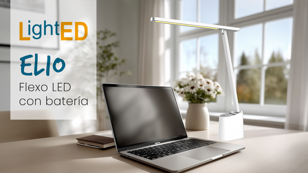 En este sentido, podemos entender la gama de Flexos LightED como una propuesta estructurada en dos grandes bloques. Por un lado, los flexos de uso fijo, donde se encuentran modelos como Nova, Astro, Halo y Zenit, orientados a escritorios permanentes y entornos donde la conexión eléctrica no supone una limitación. Por otro, el flexo con batería integrada Elio, que introduce la posibilidad de uso en espacios variables y situaciones donde la movilidad es un factor determinante.