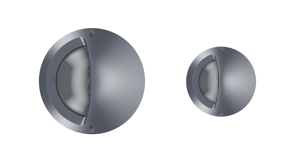 Dado que la iluminación vertical también es un tema central a la hora de planificar la iluminación en exteriores, la familia Tesis New ofrece dos soluciones diferentes en este sentido. Los bañadores de pared semiempotrables Tesis New constituyen un diseño completamente nuevo en el programa ERCO, ya que su robusta carcasa en forma de cúpula sobresale ligeramente de la superficie del suelo.