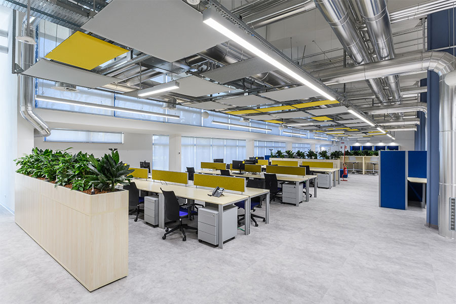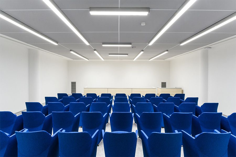 De entre la amplia gama de productos de PERFORMANCE iN LIGHTING, se seleccionaron luminarias específicas para la iluminación de oficinas que evitan la fatiga y garantizan un excelente confort visual, cumpliendo con la normativa vigente sobre la calidad de la luz en el lugar de trabajo. También se prestó especial atención a la sostenibilidad energética mediante el uso de productos 100 % LED, capaces de garantizar un consumo reducido.