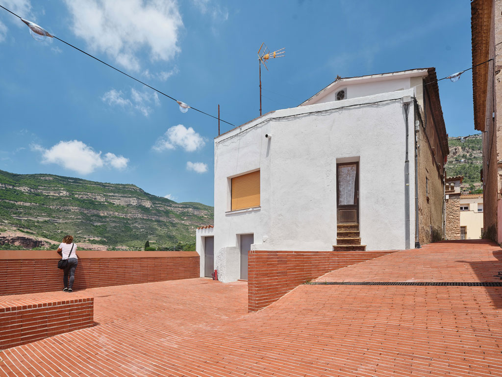 Más allá de su valor urbanístico, la intervención ha puesto en valor la memoria del lugar, recuperando un pozo histórico oculto y utilizándolo como eje para redibujar la geometría del nuevo pavimento. Esta geometría radial, junto con el uso de ladrillo macizo rojizo que remite a las tierras de los Cingles de Gallifa y de Bertí, refuerza la identidad local y genera una experiencia espacial coherente con el territorio.