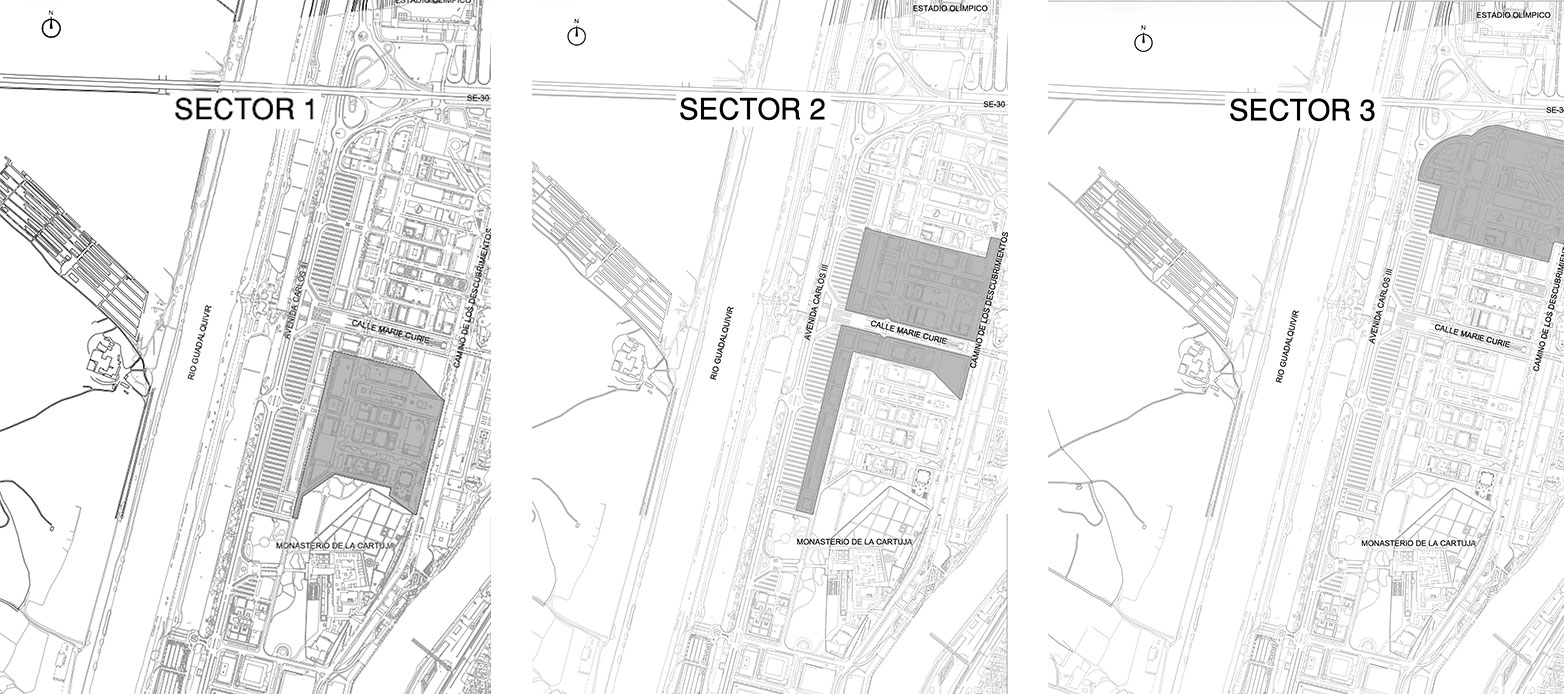 Con el fin de cumplir los plazos de ejecución exigidos por el programa de ayudas, el ámbito del parque tecnológico se ha dividido en tres sectores, posibilitando la ejecución simultánea de las obras mediante tres proyectos independientes. En consecuencia, el contrato se ha estructurado en tres lotes, correspondientes a cada uno de estos sectores: