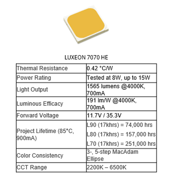 “Más luz, mayor eficacia, reducción de los costes del sistema y un rendimiento más duradero y fiable siguen siendo las principales necesidades de nuestros clientes, y con el nuevo LUXEON 7070 HE damos respuesta a todas ellas”, concluye Keen Oun Yap, responsable de producto de Lumileds.