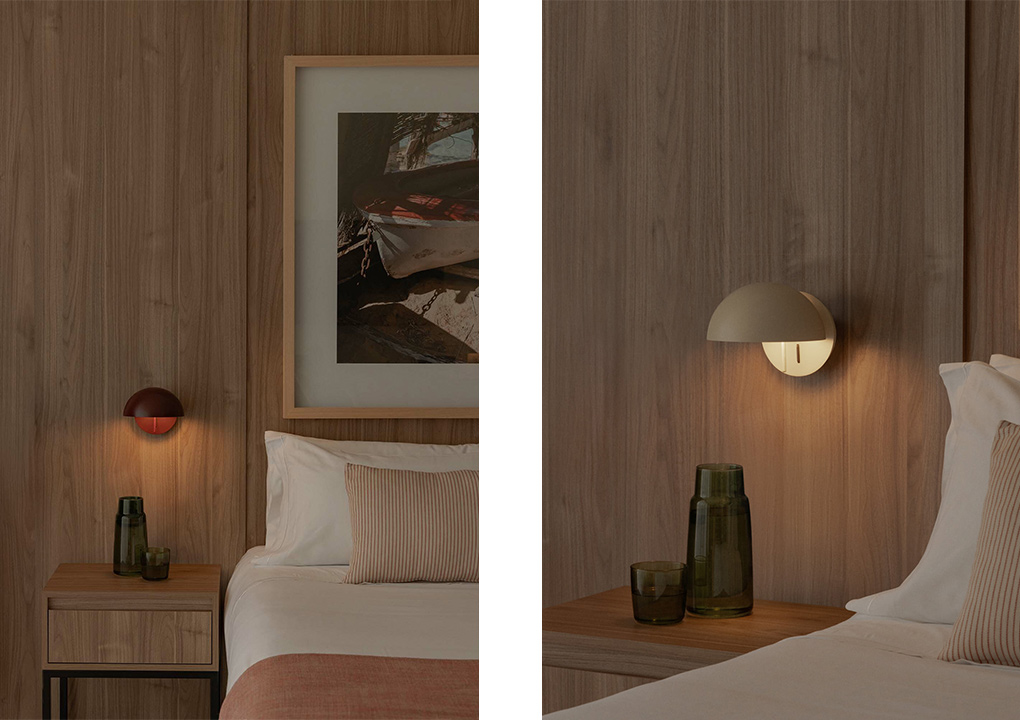 El diseño monocromático, disponible en beige, burdeos y negro, potencia esta cualidad integradora. Al evitar el contraste cromático y prescindir de acabados brillantes o tratamientos decorativos llamativos, las luminarias de la familia Matilda se presentan como elementos silenciosos, que no compiten con el espacio, sino que lo acompañan, favoreciendo a crear un ambiente relajado y atemporal.