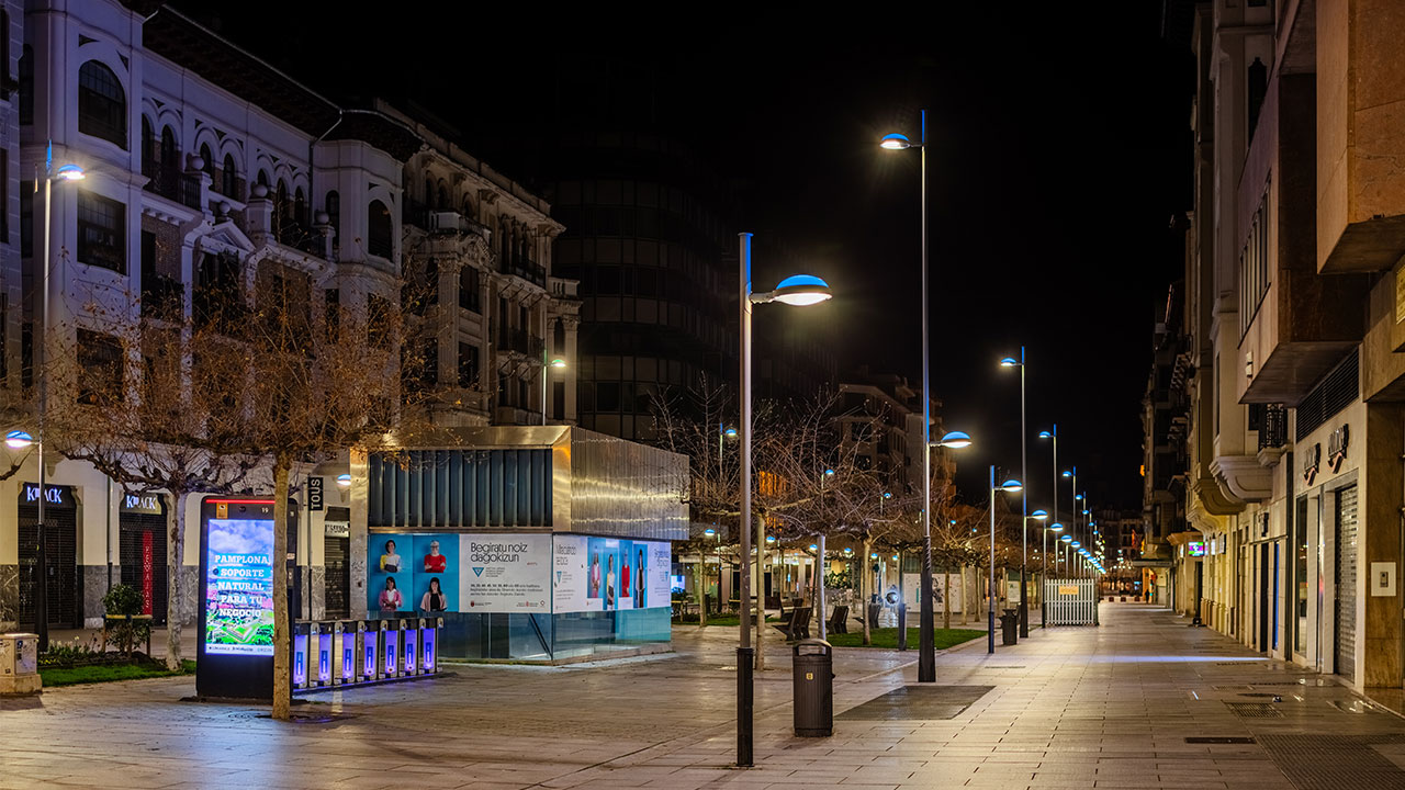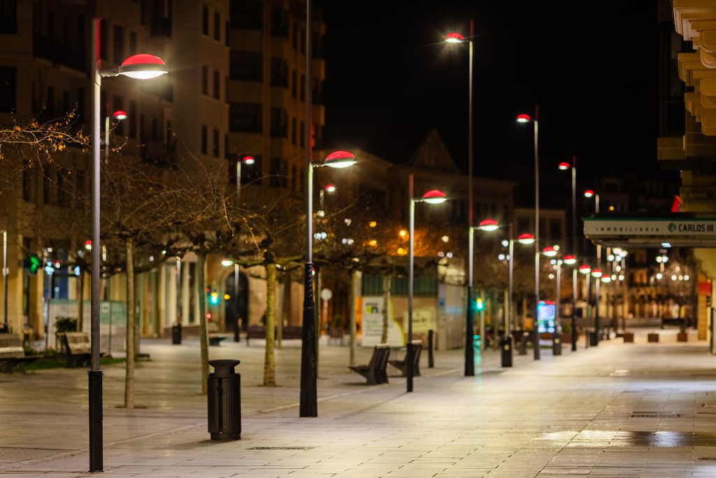 La Avenida Carlos III, arteria vital en el corazón histórico de Pamplona, ha experimentado una metamorfosis visual gracias a la reciente renovación de su sistema de alumbrado. La incorporación de las luminarias Metrópoli Color de ATP, las cuales disponen de una innovadora cubierta retroiluminada RGBW, ha revitalizado este espacio urbano, convirtiendo la avenida en un espacio icónico de iluminación dinámica y personalizable.