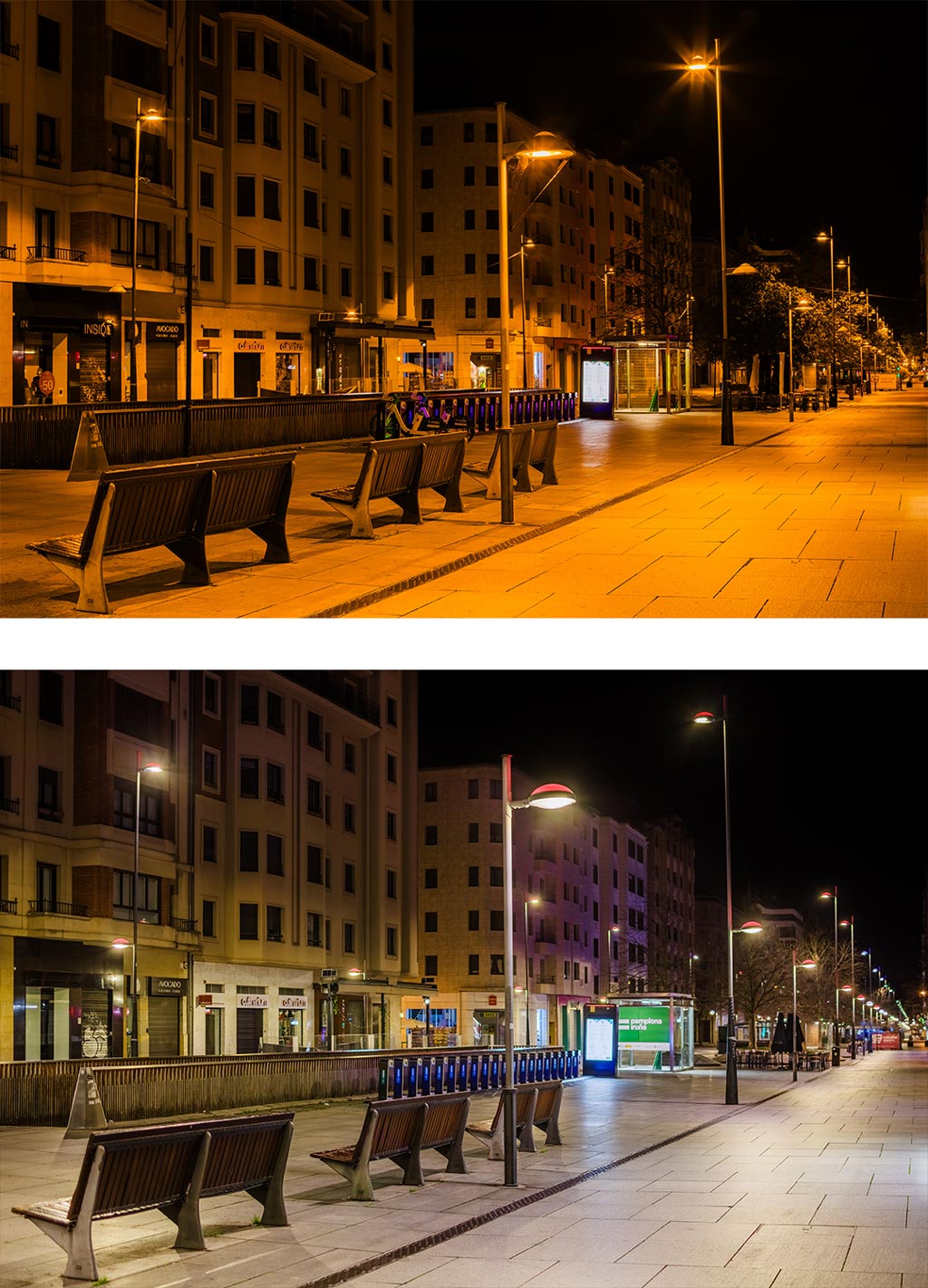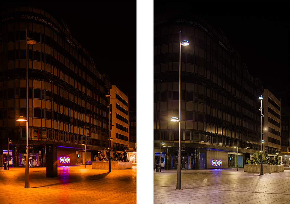 Pero, más allá de la mejora lumínica y de eficiencia energética que se ha logrado con la nueva instalación, la implementación de las luminarias Metrópoli Color ha dotado a este espacio urbano de un renovado espectro de posibilidades creativas.