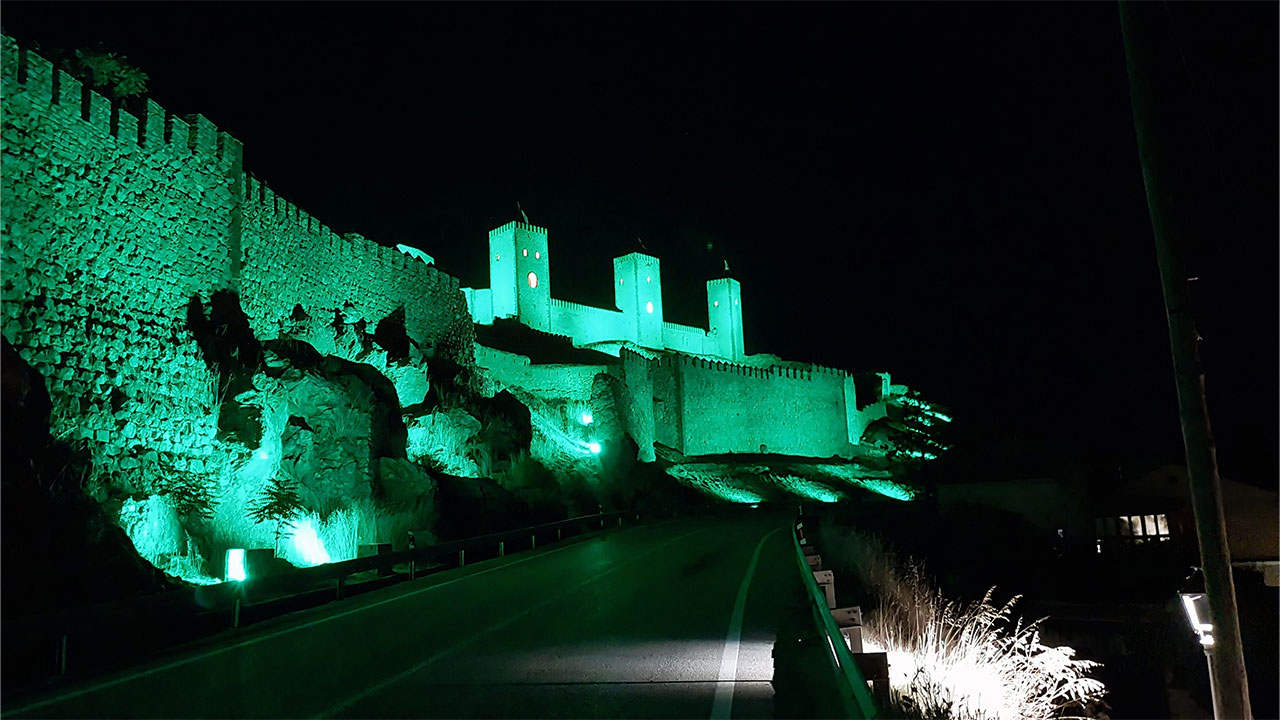 En 2023 se ejecutó la primera fase de iluminación, que dotó al castillo y la torre de un sistema LED. La segunda fase, recién inaugurada, ha permitido extender la luz a los 600 metros de muralla exterior mediante 69 nuevos puntos de luz, integrados de forma coordinada con los anteriores.