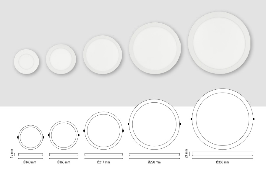 Desde aplicaciones residenciales y pequeños espacios comerciales hasta entornos con mayores requerimientos de iluminación, la gama mantiene una solución homogénea en diseño, prestaciones y funcionalidad.