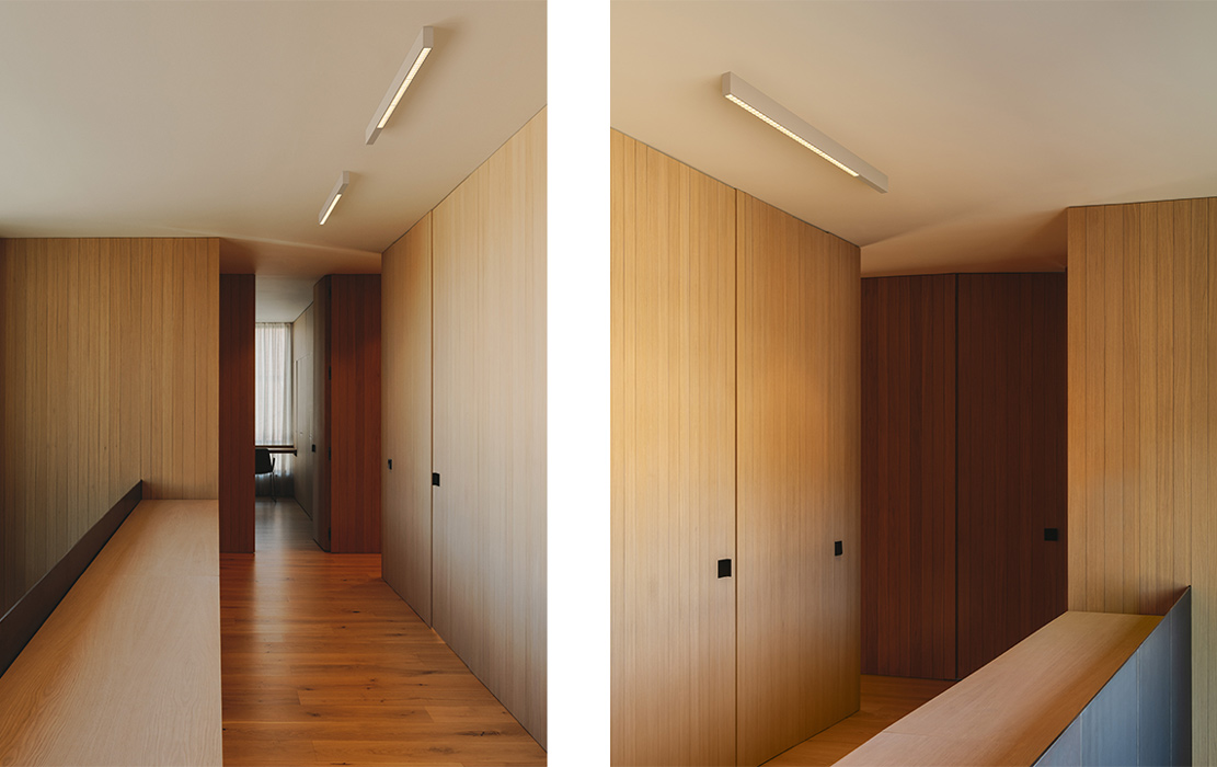 Offset Ceiling, por su parte, se plantea como un sistema modular de techo, disponible en diferentes longitudes y ángulos de emisión. Permite combinar hasta cinco efectos de iluminación distintos, facilitando la creación de composiciones personalizadas según las dimensiones y la función del espacio. Esta versatilidad lo hace especialmente útil en pasillos, zonas de circulación o entornos de trabajo donde se requiere controlar la dirección y la distribución del flujo luminoso con precisión.