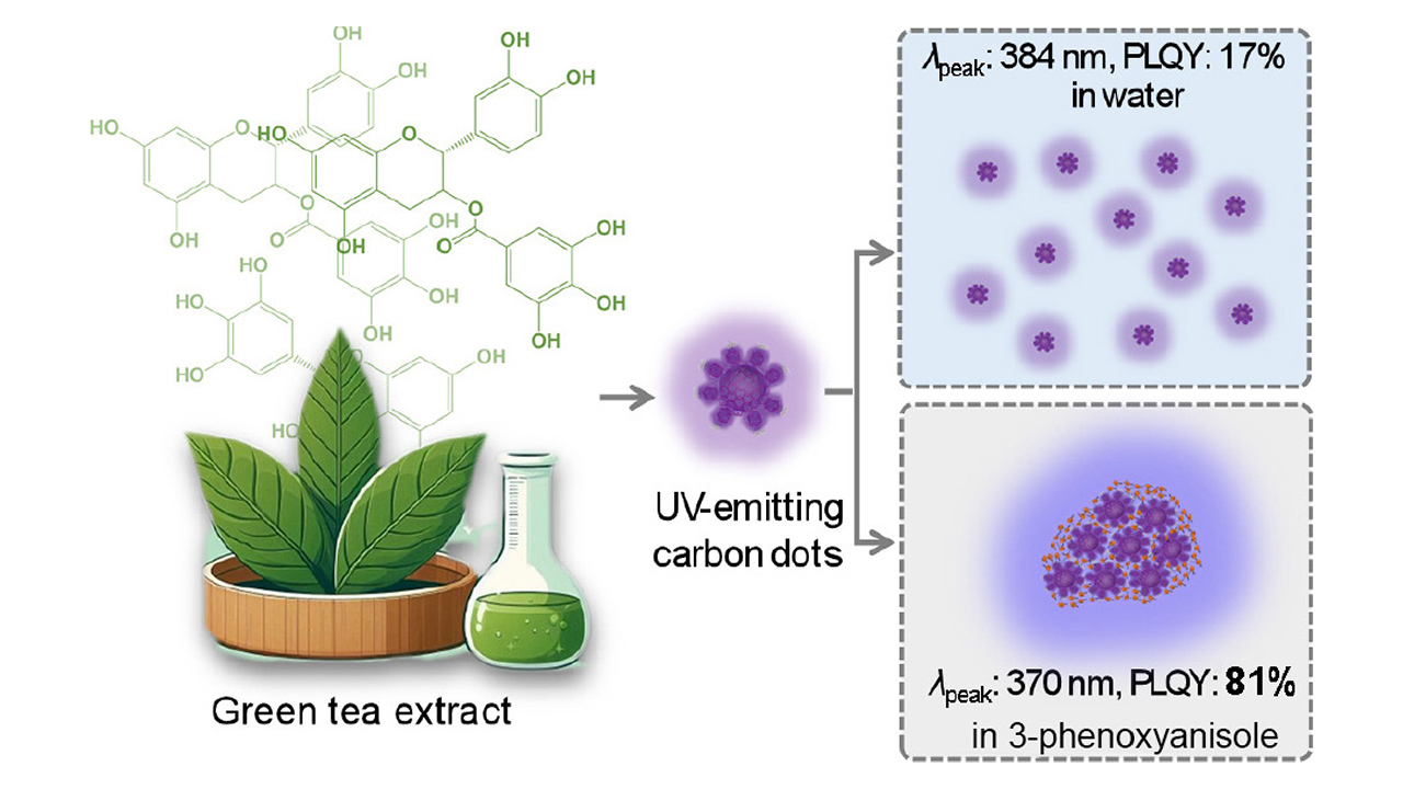 El equipo de investigación liderado por la profesora asociada Jia Wang, del Departamento de Química de la Universidad de Umeå, ha dado un paso relevante al sintetizar por primera vez CDs emisores de UV a partir de un extracto de té verde común. Los resultados, publicados en la revista Nano Research en abril de 2025, muestran que este biomaterial, tratado mediante un proceso hidrotérmico sencillo, genera nanodiscos de carbono capaces de emitir luz con un pico de fotoluminiscencia centrado en 384 nm, es decir, dentro del espectro UV-A.