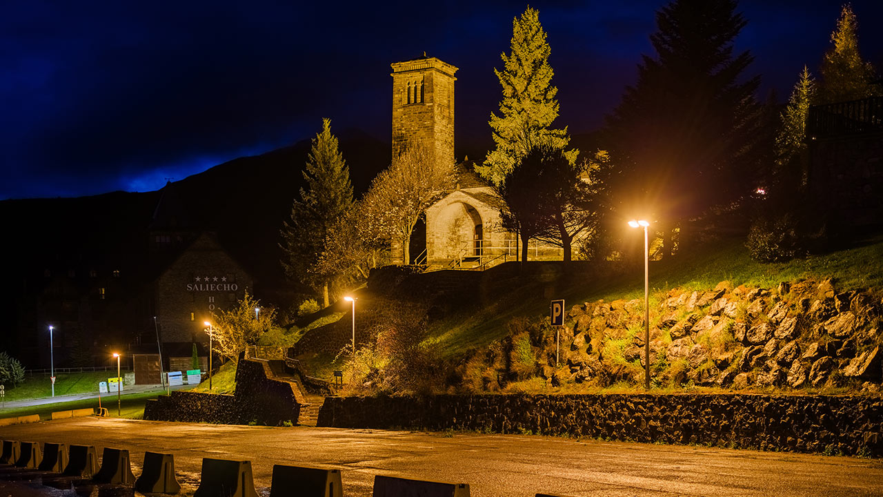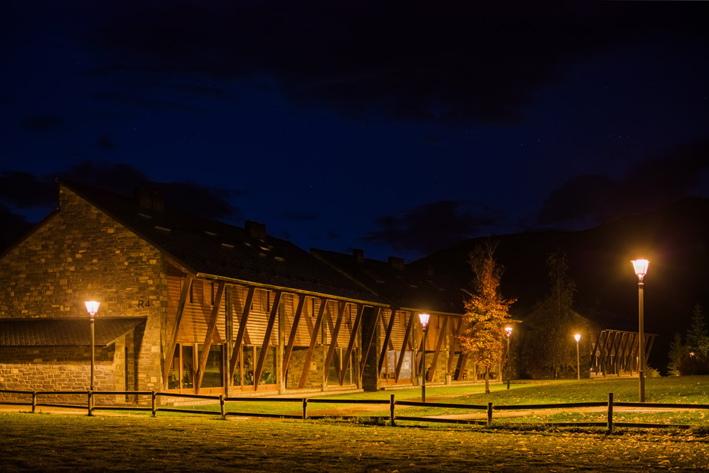 Además, el diseño lumínico ha sido calculado con precisión, evitando la sobreiluminación y asegurando que la luz se proyecte exclusivamente donde es necesaria. Esto permite optimizar el consumo energético de la instalación, a la vez que se protege la riqueza natural del Valle de Tena y mejora la experiencia visual de residentes y visitantes.