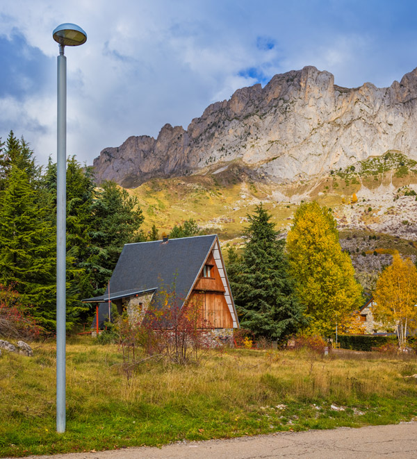 Pero no solo la minimización de la contaminación lumínica y la preservación de la calidad del cielo nocturno era uno de los retos del proyecto. Ubicado en el Pirineo aragonés, Formigal se encuentra en una zona propensa a tormentas eléctricas frecuentes, lo que puede provocar sobretensiones en la red de alumbrado. Para garantizar la seguridad del sistema y evitar daños en los equipos electrónicos, se han instalado luminarias Clase II sin toma de tierra, impidiendo la entrada de picos de tensión derivados de descargas atmosféricas.