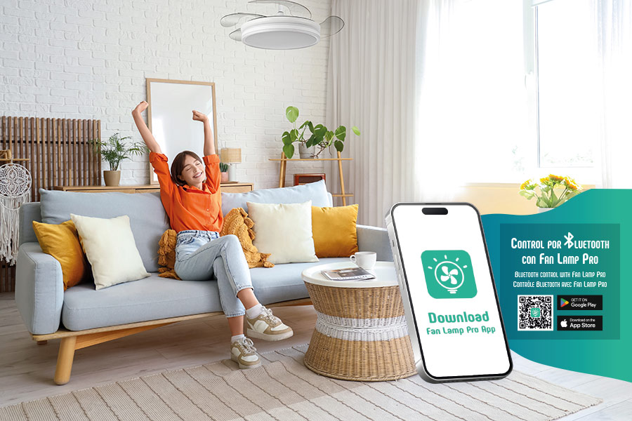 Una de las principales novedades del catálogo LightED Ventiladores 2026 es la incorporación del control por Bluetooth en una parte significativa de la gama. Esta funcionalidad responde a una demanda creciente de soluciones más intuitivas y accesibles, que no requieren instalaciones complejas ni sistemas adicionales. El control por Bluetooth permite gestionar de forma sencilla parámetros como la velocidad, los modos de funcionamiento o la iluminación, mejorando la experiencia de uso tanto para el usuario final como para los profesionales que integran estos productos en sus proyectos.