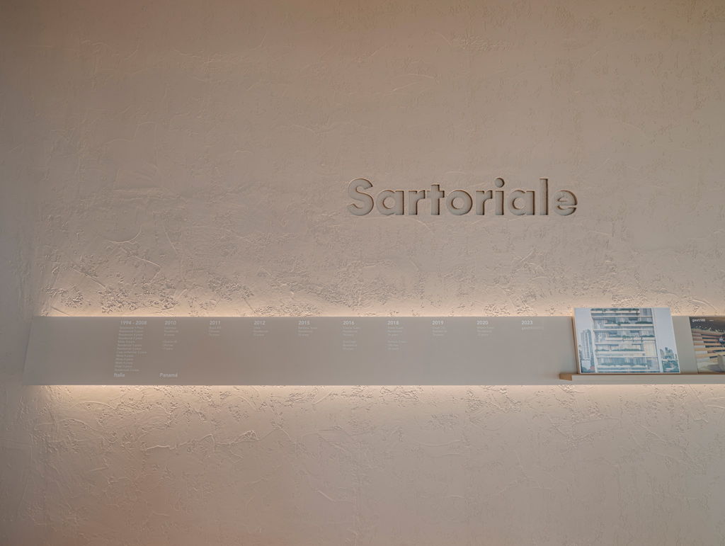 Un ejemplo de ello es el proyecto desarrollado por el estudio DOS-G para las oficinas de la inmobiliaria Sartoriale en Ciudad de Panamá. Situado en la parte alta de un edificio con fachada acristalada continua, el espacio se configura a partir de una premisa clara: aprovechar la luz natural como elemento estructural y, a partir de ahí, construir una atmósfera que combine funcionalidad y confort.