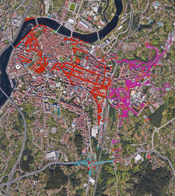 Aunque algunos tramos coinciden con carreteras de titularidad estatal o provincial —como la N-550 o la PO-542—, el mantenimiento y la gestión del alumbrado en esos puntos fueron transferidos al Concello, lo que permite una actuación integral y coherente en todo el entorno urbano.