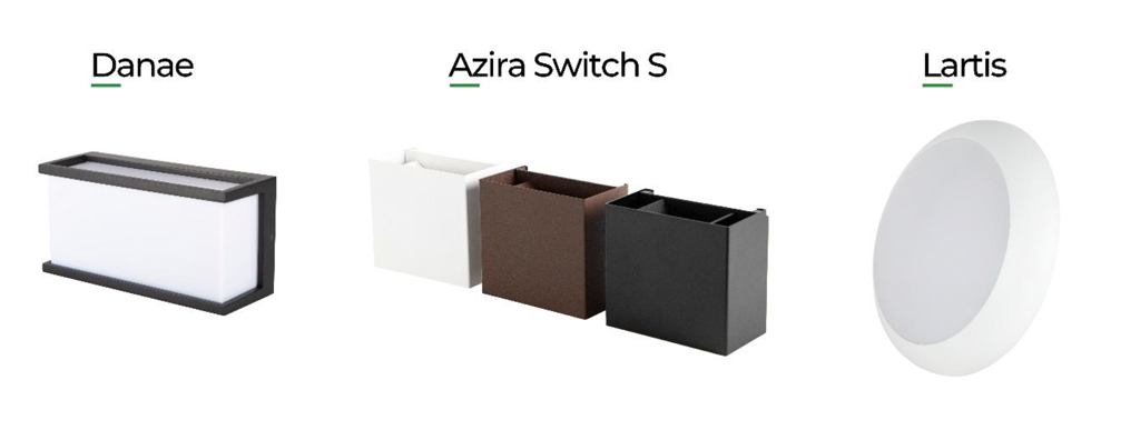 En proyectos residenciales y contract, la iluminación decorativa exterior desempeña una doble función: realzar la arquitectura del espacio y mejorar la experiencia del usuario en zonas de acceso o estancia. Con este objetivo, GREEN Y SOLAR reúne una selección de apliques concebidos para su instalación en entradas, porches y terrazas. Entre ellos destacan Azira Switch y la nueva Azira Switch S, junto a otros modelos como Greco, Bayard y Bayard L, Niza, Sura, Deva Switch, Danae, Leida y Anvita.