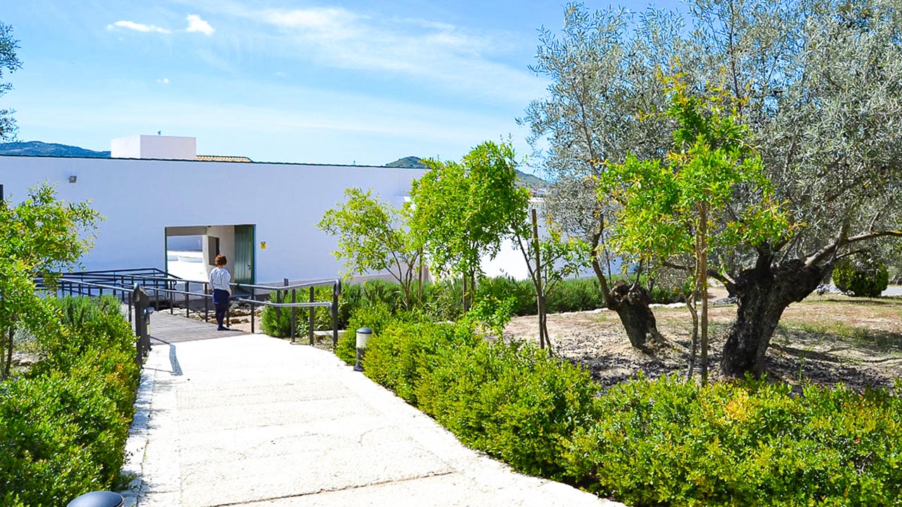 A estas carencias se suman problemas funcionales relevantes: ausencia de una iluminación de evacuación eficaz en determinadas zonas, equipos obsoletos en jardines y accesos, y deficiencias importantes en el interior del centro de visitantes. En la zona expositiva, los proyectores generan manchas de luz indeseadas; los downlights no garantizan niveles adecuados ni control del deslumbramiento; y el taller de restauración carece de una iluminación específica para tareas que requieren alta precisión visual y fidelidad cromática.