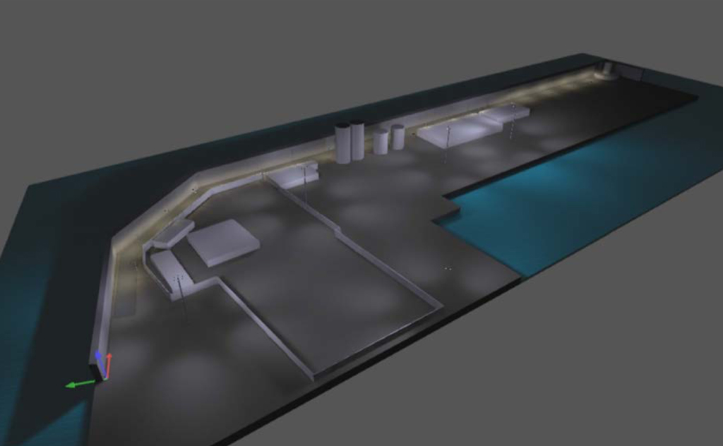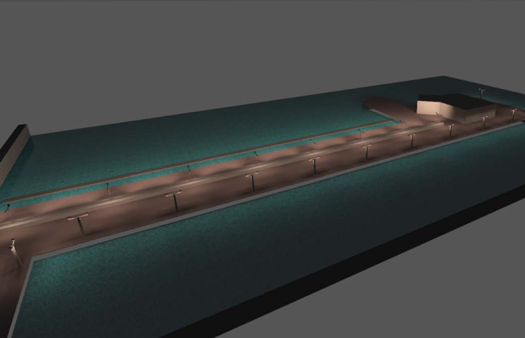 En el espaldón del muelle comercial se procederá al desmontaje de las luminarias actualmente instaladas en el muro perimetral. Estas serán sustituidas por una nueva línea de luminarias ubicadas en el margen opuesto del vial, con el fin de mejorar la uniformidad y eficiencia del sistema de iluminación. El tramo afectado se extiende desde la Caseta de Acceso Alfa IV hasta la baliza NE III (faro del puerto), una zona de tránsito estratégico que requiere condiciones lumínicas óptimas para la seguridad y operatividad nocturna.
