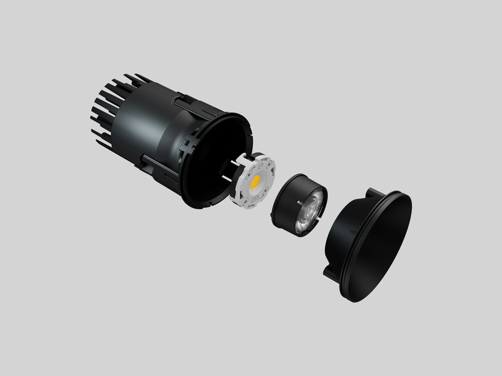 Esta solución prolonga la vida útil de la luminaria, reduce los costes de mantenimiento y posibilita actualizar la fuente de luz con las versiones LED más recientes disponibles en el mercado. Además, el sistema ofrece la posibilidad de variar la temperatura de color —desde un tono cálido de 2700K hasta uno neutro de 4000K—, aportando así un alto grado de flexibilidad creativa.