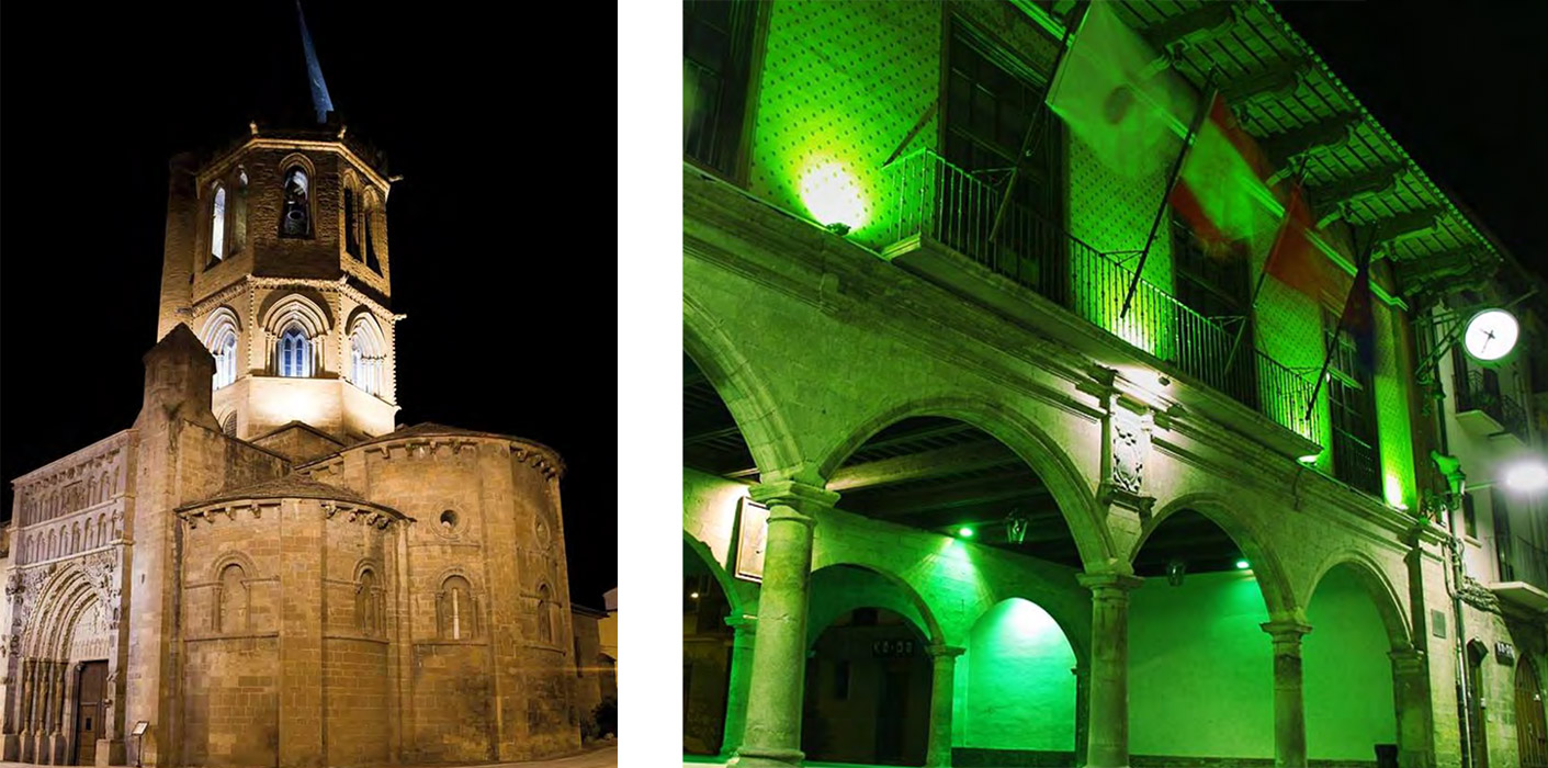 Fuente de imágenes: Simulaciones del alumbrado ornamental a instalar. Fuente: ‘Proyecto de renovación de la iluminación de los monumentos de Sangüesa/Zangoza’ (PPT de la licitación)
