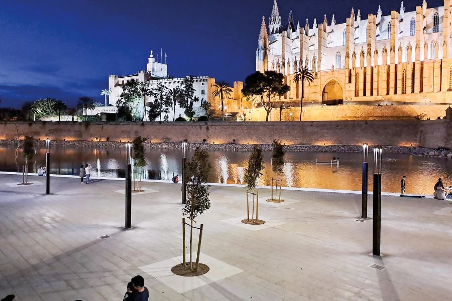 En Palma de Mallorca, en una gran plaza en una zona de prestigio, se llevó a cabo la sustitución de las antiguas luminarias con protector esférico sin eficiencia energética por elegantes columnas autónomas LALUNA equipadas con paneles solares verticales.
