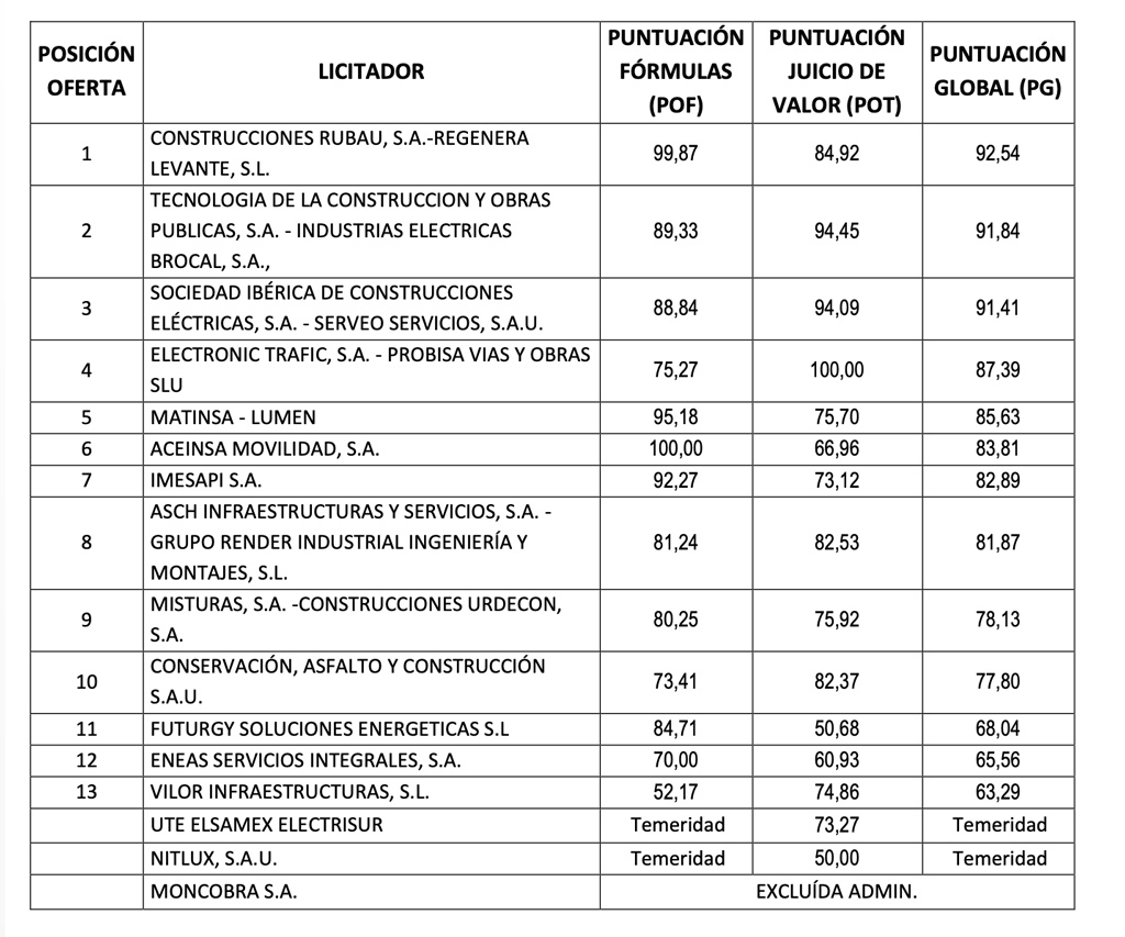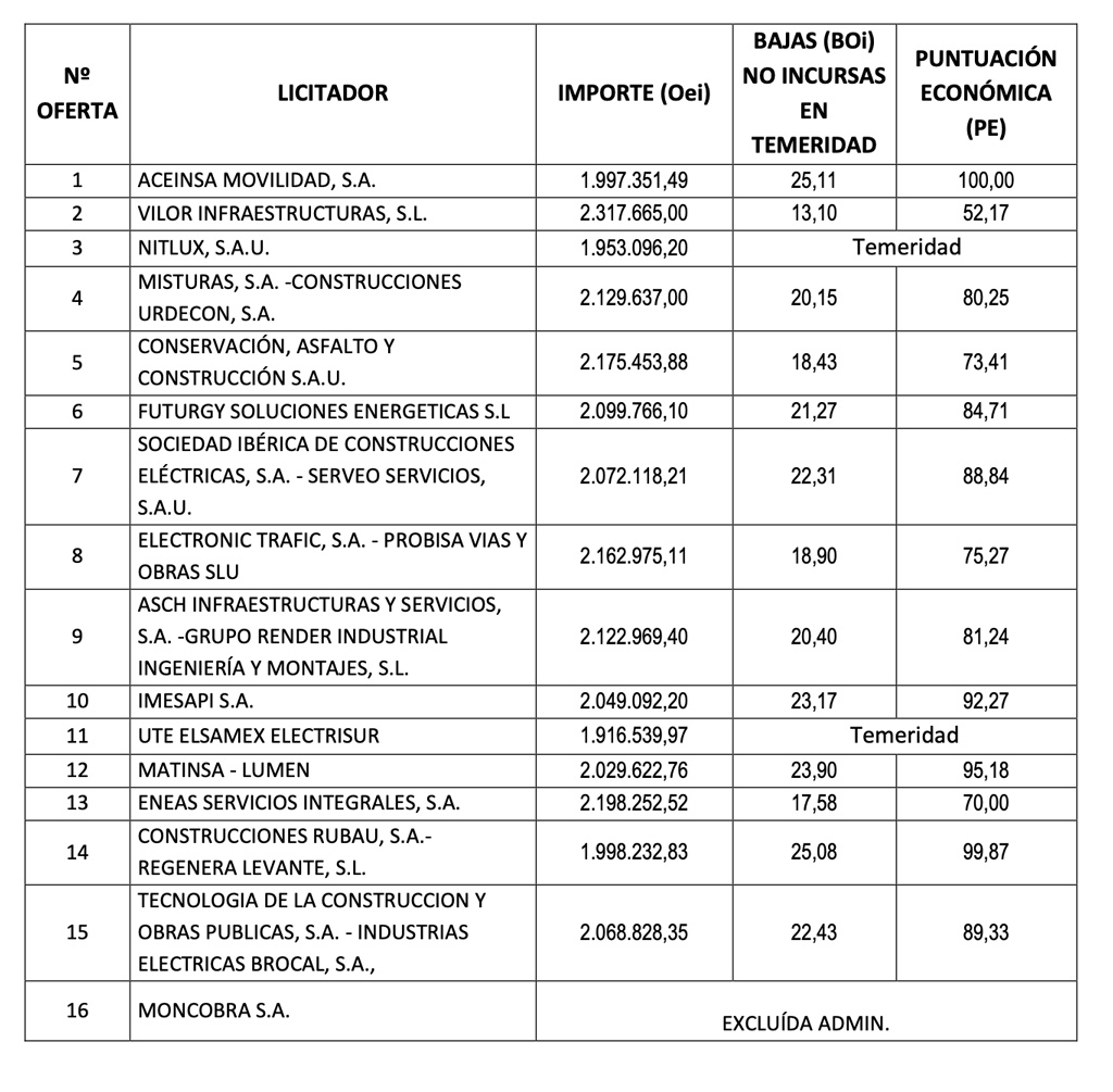 A la licitación, publicada en diciembre de 2024 con un presupuesto base de licitación de 3.227.126,86 euros (IVA incluido), se presentaron 15 ofertas de las siguientes empresas: