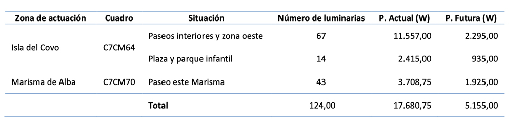 Fuente de imágenes: Proyecto de mejora de la iluminación en los parques de la Isla del Covo y las Marismas de Alba (PPT de la Licitación)