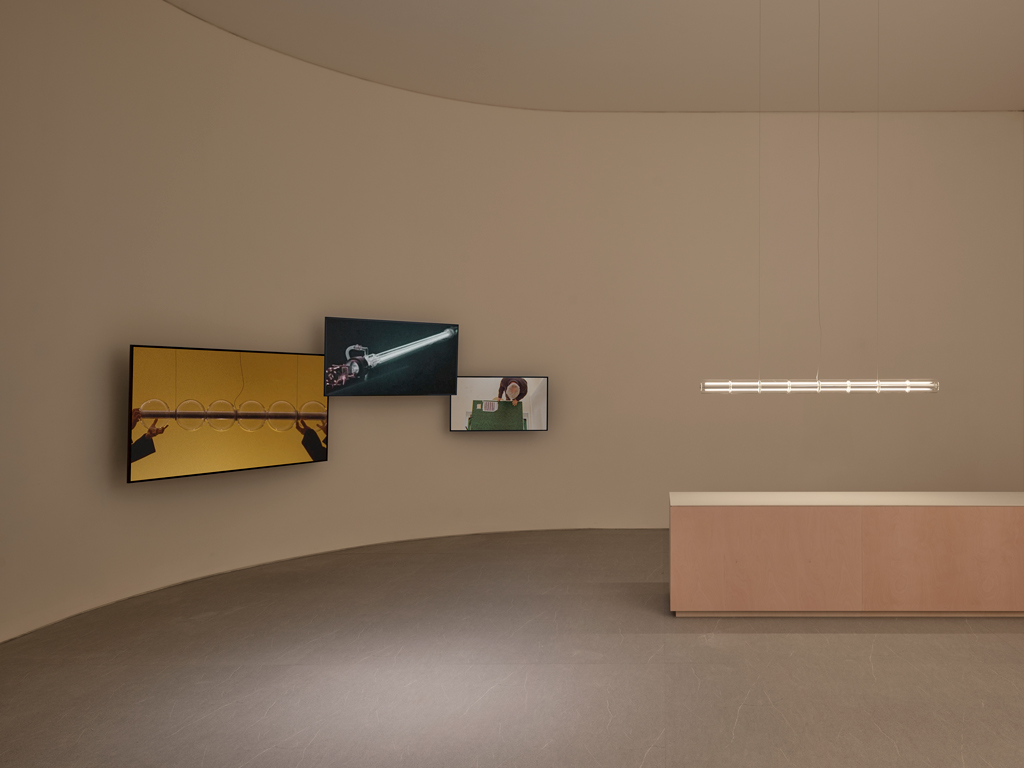 Más allá de esta lógica aparentemente cerrada, la propuesta es modular en el sentido más operativo del término. La instalación de varios sistemas en paralelo permite crear estructuras compositivas de mayor complejidad, generando atmósferas envolventes en espacios de gran escala sin renunciar a la percepción de ligereza y delicadeza que transmite cada módulo por separado.